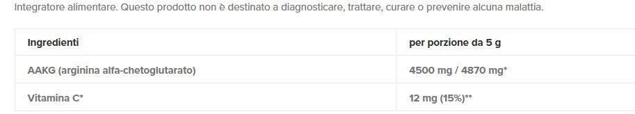 L'arginina, la base del booster di azoto AAKG, svolge un ruolo cruciale nella regolazione della produzione di ossido nitrico, un vasodilatatore naturale. Questo aumenta il diametro dei vasi sanguigni, consentendo un maggiore flusso sanguigno. Questo permette ai muscoli di ricevere più ossigeno e nutrienti, rendendoli più forti e resistenti, consentendo di allenarsi più a lungo. Inoltre, come catalizzatore per la sintesi proteica, la L-arginina porta anche a una più rapida riparazione e rigenerazione dei tessuti, contribuendo a purificare il corpo dalle tossine e dai sottoprodotti dell'attività intensa. Pertanto, è possibile utilizzare questo integratore consecutivamente sia prima che dopo l'allenamento, a seconda delle proprie esigenze. Inoltre, influenza anche altre funzioni corporee stimolando il rilascio di ormoni come insulina, glucagone e ormone della crescita, e contribuisce anche a mantenere sani la pressione sanguigna, la frequenza cardiaca e il sistema immunitario. Tutto questo ti renderà inarrestabile e supererà tutti gli altri sulla tua strada verso la vetta!